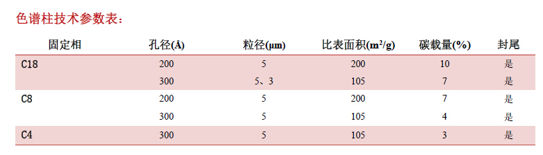 其在純水溶液中不會崩解。提供200 ?和300 ?兩種大孔徑規格,結合多種固定相選擇(C18、
